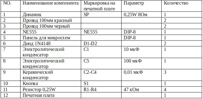 Конструктор NE555 "Дверной звонок Ding Dong"