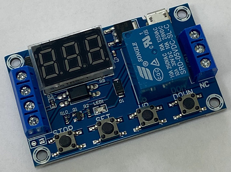 Программируемое реле времени имеет несколько режимов работы, чтобы сменить режим, необходимо зажать кнопку SET на 1 секунду и отпустить, теперь используя кнопки UP (верх) и DOWN (вниз) выбираем необходимый режим и подтверждаем выбор коротким нажатием кнопки SET.